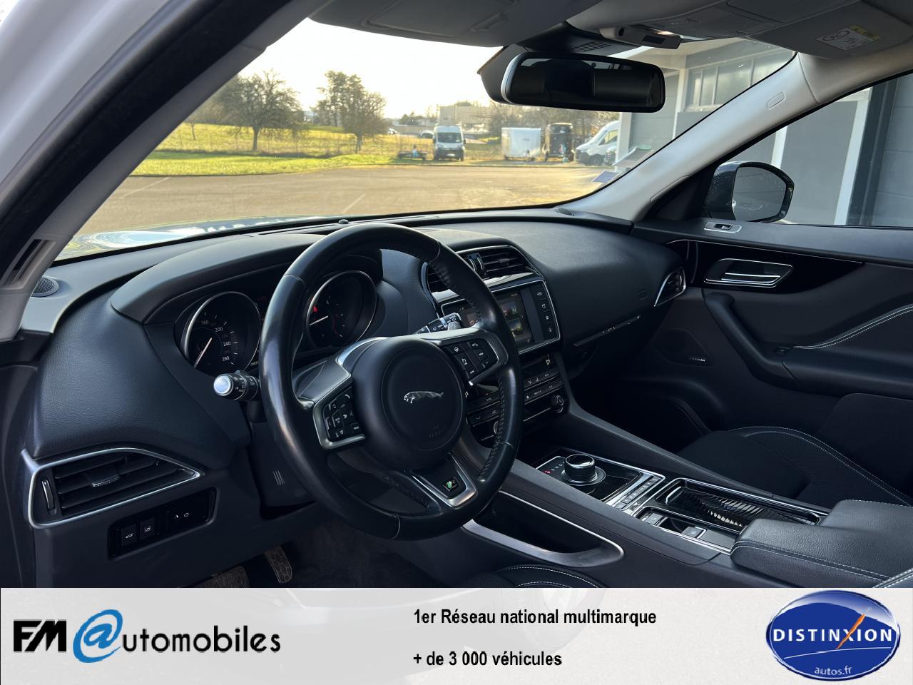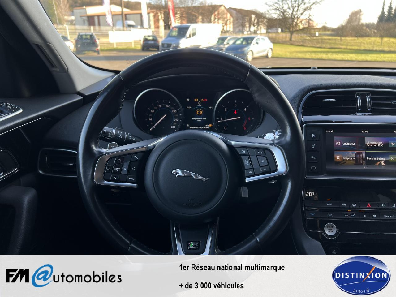 Climatisation automatique 2 zonesDétecteurs d'obstacles arrièreDétecteurs d'obstacles avantDirection à assistance électrique proportionnelle à la vitesseEcran TFT couleur 5''Entourage des vitres latérales Gloss BlackFeux arrière à LEDFrein de parking électriqueInControl Touch - Système de navigation sur carte SD, écran tactile 8'', commandes vocales Jaguar VoiceInserts de portières en finition Gloss BlackJaguar Drive Control avec mode Eco, Normal, Dynamic et HiverJantes 19" 5 branches doubles "Style 5038" Grey Diamond TurnedKit carrosserie R-SportPalettes de changement de vitesses en chromePhares Xénon et signature LED et lave-pharesSièges SportSystème Bluetooth d'intégration du téléphone personnel avec fonction de streaming audio et compatibilité iPodTechnologie Stop/StartVolant multifonctions en cuir pleine fleur avec touches chromées et badge 'R-Sport'Sellerie cuir tissu, chauffantsvolant +palettesvolant chauffantvolant multifonctions