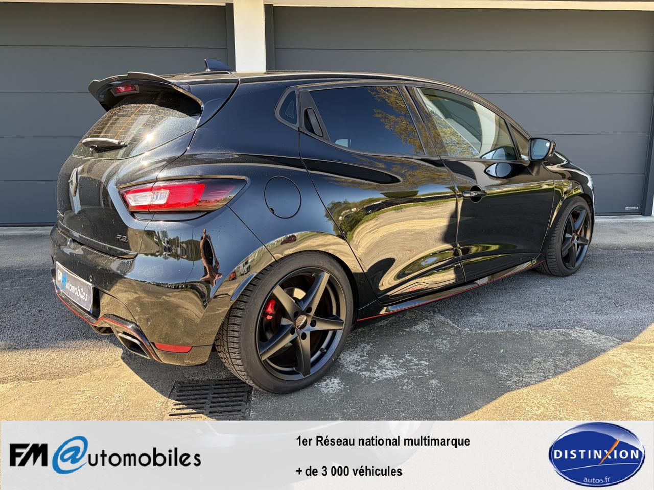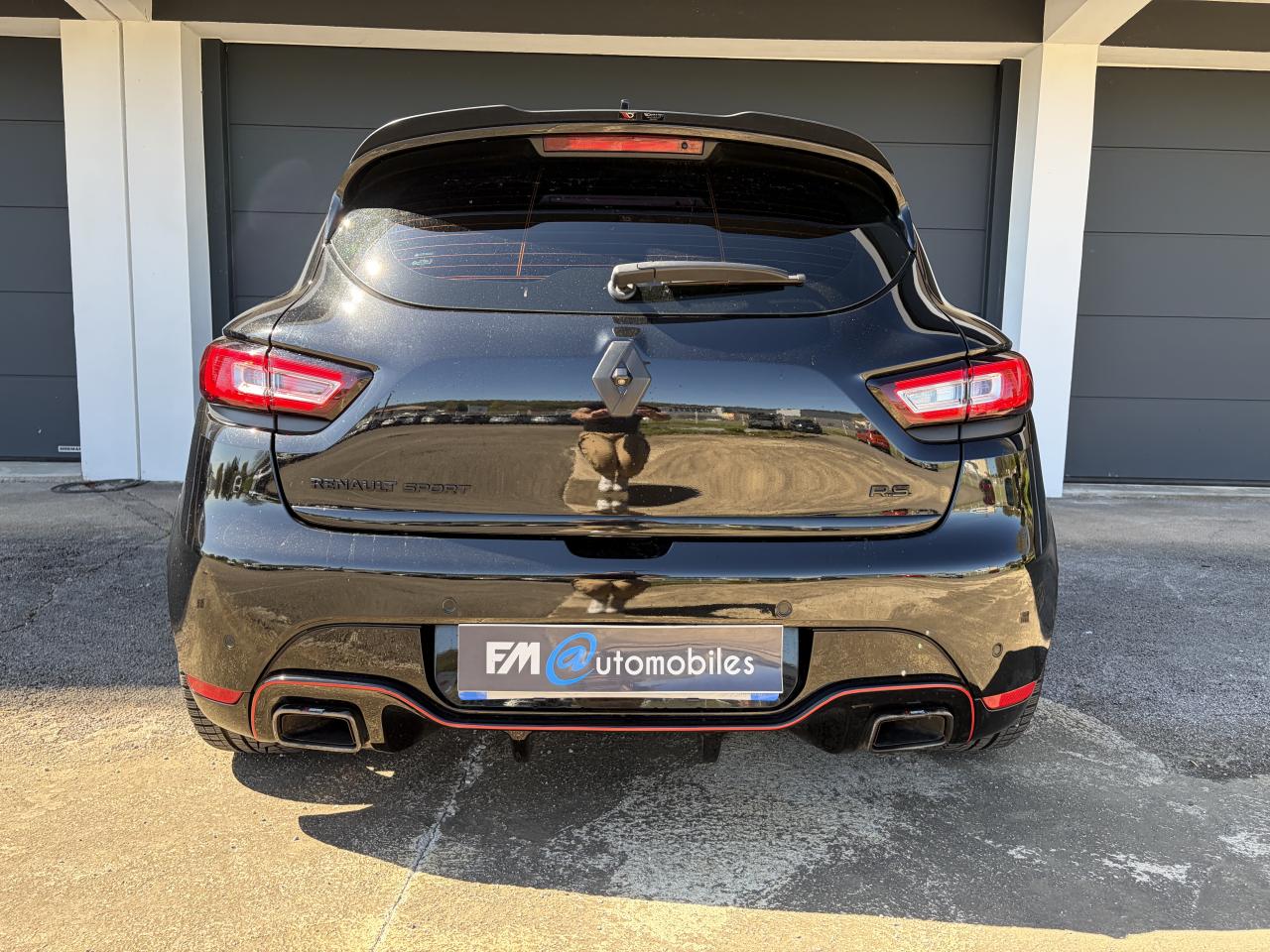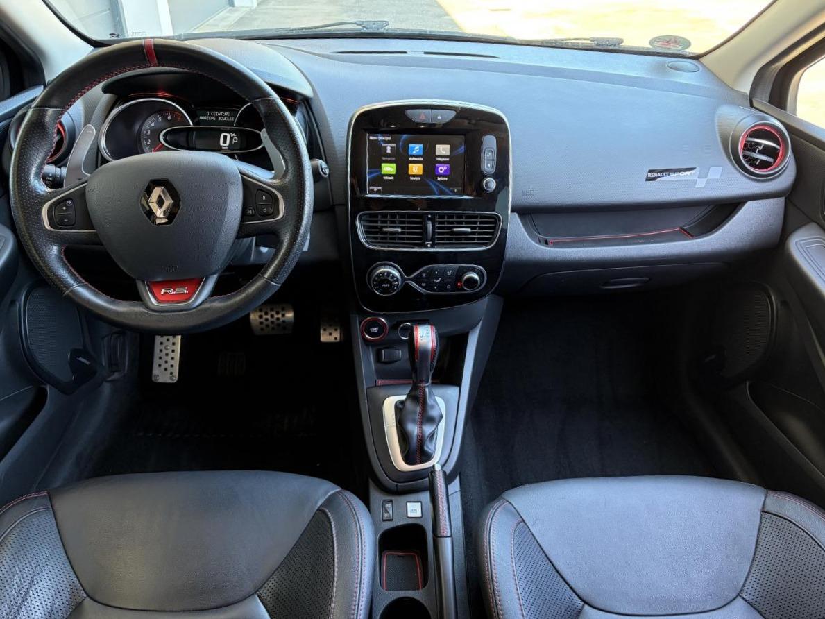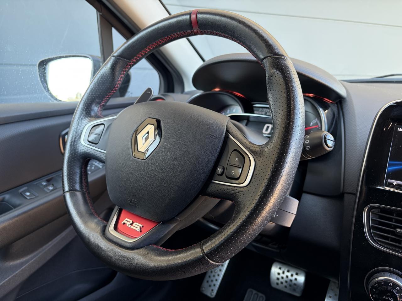 Aide au stationnement arrièreAnimation intérieure Renault Sport, harmonie Rouge (aérateurs, levier de vitesse, frein à main)Badging « R.S. renault sport » sur bas de hayon arrière droitBadging R.S. sous logo de face avantBanquette arrière rabattable 1/3-2/3 avec 3 appuis-tête réglables en hauteurBas de caisse spécifique (bavolets)Becquet MAXTONButées de compression hydrauliqueCarte Renault avec accès et démarrage mains-libres avec fermeture à l’éloignementChâssis TrophyClimatisation régulée avec filtre combiné pollen / charbon actifDifférentiel électronique R.S. DiffDirection assistée électrique à assistance variableDouble canule d'échappement Carbone badgée AkrapovicEclairage additionnel LED R.S. Vision (fonction cornering, antibrouillard, longue portée et feux de position)Etriers de frein rougesFeux arrière avec signature lumineuse à LEDFond de compte-tours spécifique Renault SportJupe de bouclier arrière noir Grand brillantLigne d’échappement AkrapovicOrdinateur de bordPack R-Link EvolutionProjecteurs Full LED Pure Vision avec signature lumineuseR.S. drive (3 modes : normal, sport, race)Régulateur et limiteur de vitesseSellerie cuir RS Carbonne foncéSiège conducteur réglable en hauteurSiège passager réglable en hauteurSièges avant chauffantsVolant cuir spécifique Renault Sport avec surpiqûres Rouge et repère Rouge du Point ZéroVolant réglable en hauteur et en profondeur