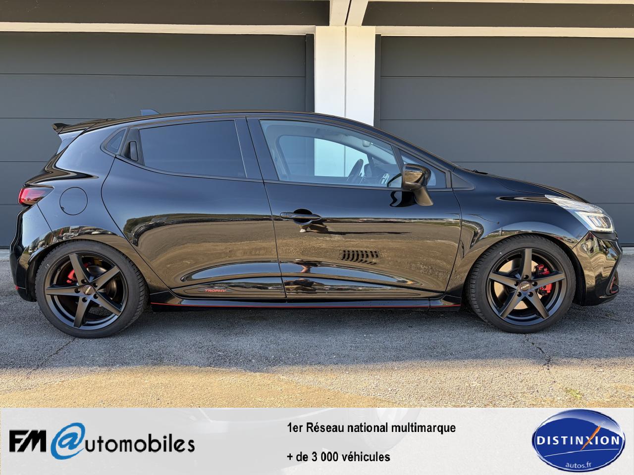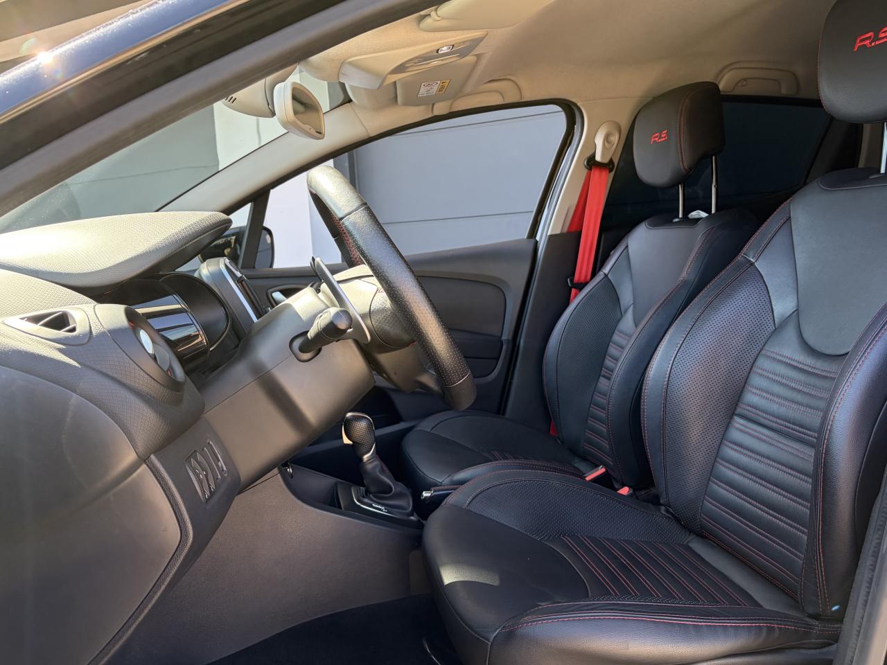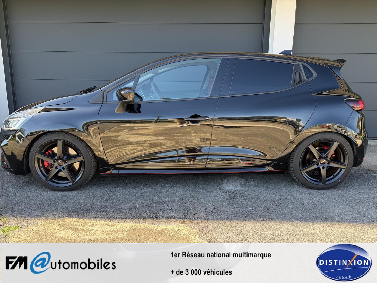 Aide au stationnement arrièreAnimation intérieure Renault Sport, harmonie Rouge (aérateurs, levier de vitesse, frein à main)Badging « R.S. renault sport » sur bas de hayon arrière droitBadging R.S. sous logo de face avantBanquette arrière rabattable 1/3-2/3 avec 3 appuis-tête réglables en hauteurBas de caisse spécifique (bavolets)Becquet MAXTONButées de compression hydrauliqueCarte Renault avec accès et démarrage mains-libres avec fermeture à l’éloignementChâssis TrophyClimatisation régulée avec filtre combiné pollen / charbon actifDifférentiel électronique R.S. DiffDirection assistée électrique à assistance variableDouble canule d'échappement Carbone badgée AkrapovicEclairage additionnel LED R.S. Vision (fonction cornering, antibrouillard, longue portée et feux de position)Etriers de frein rougesFeux arrière avec signature lumineuse à LEDFond de compte-tours spécifique Renault SportJupe de bouclier arrière noir Grand brillantLigne d’échappement AkrapovicOrdinateur de bordPack R-Link EvolutionProjecteurs Full LED Pure Vision avec signature lumineuseR.S. drive (3 modes : normal, sport, race)Régulateur et limiteur de vitesseSellerie cuir RS Carbonne foncéSiège conducteur réglable en hauteurSiège passager réglable en hauteurSièges avant chauffantsVolant cuir spécifique Renault Sport avec surpiqûres Rouge et repère Rouge du Point ZéroVolant réglable en hauteur et en profondeur