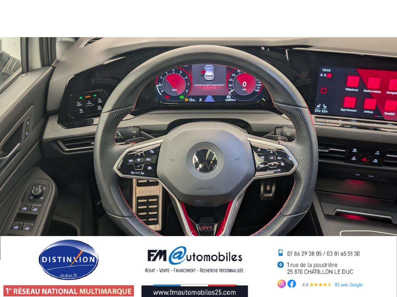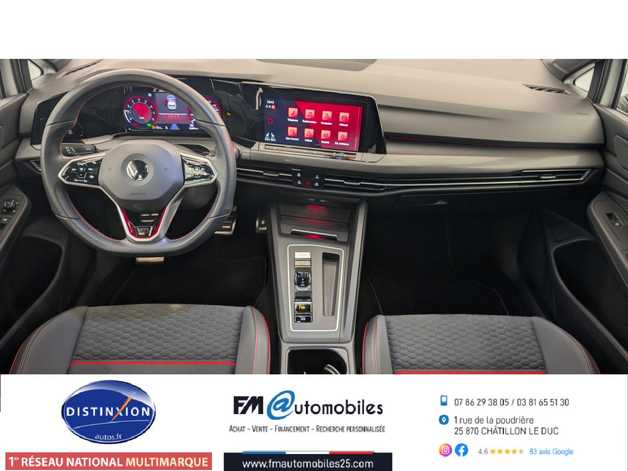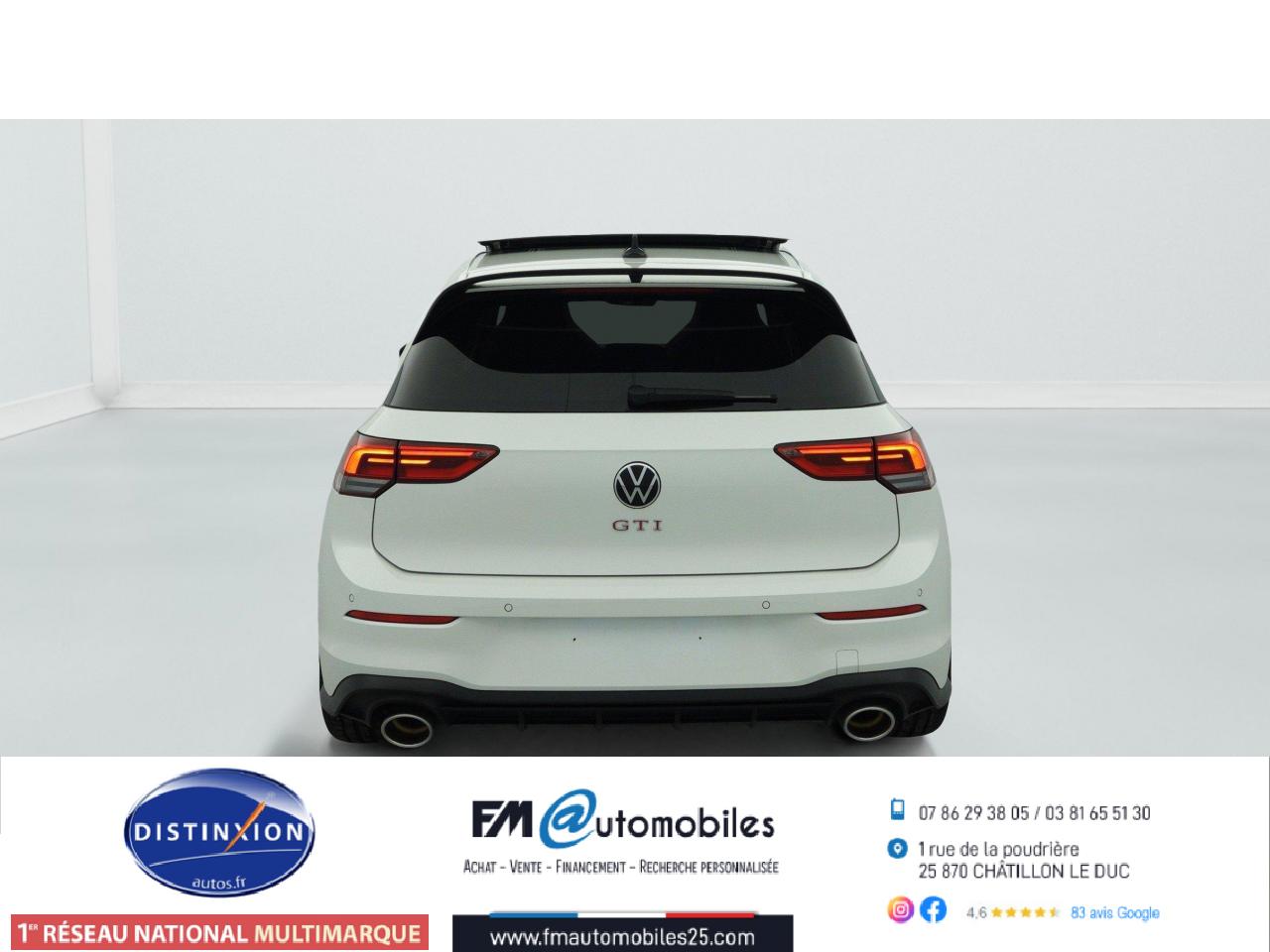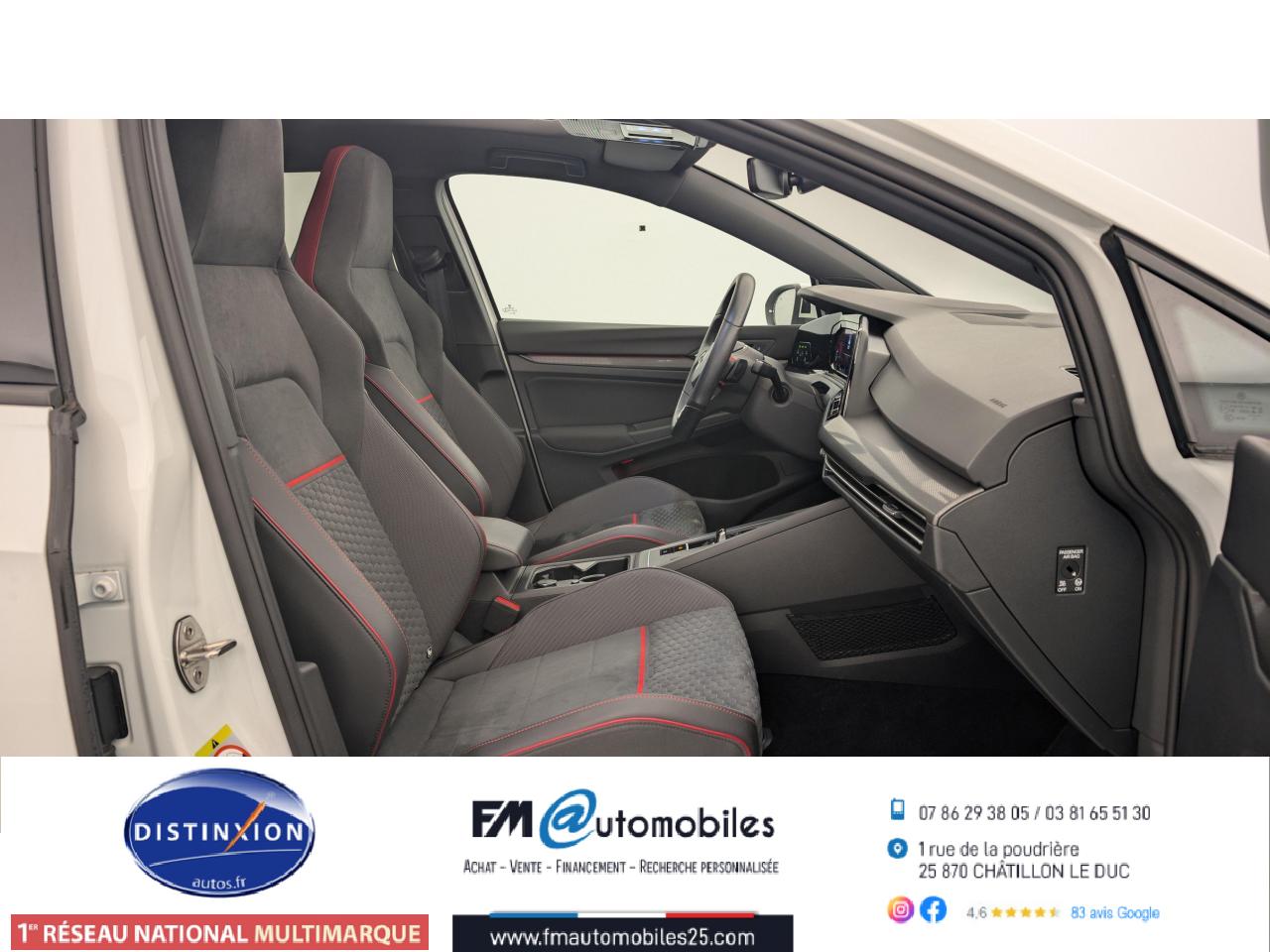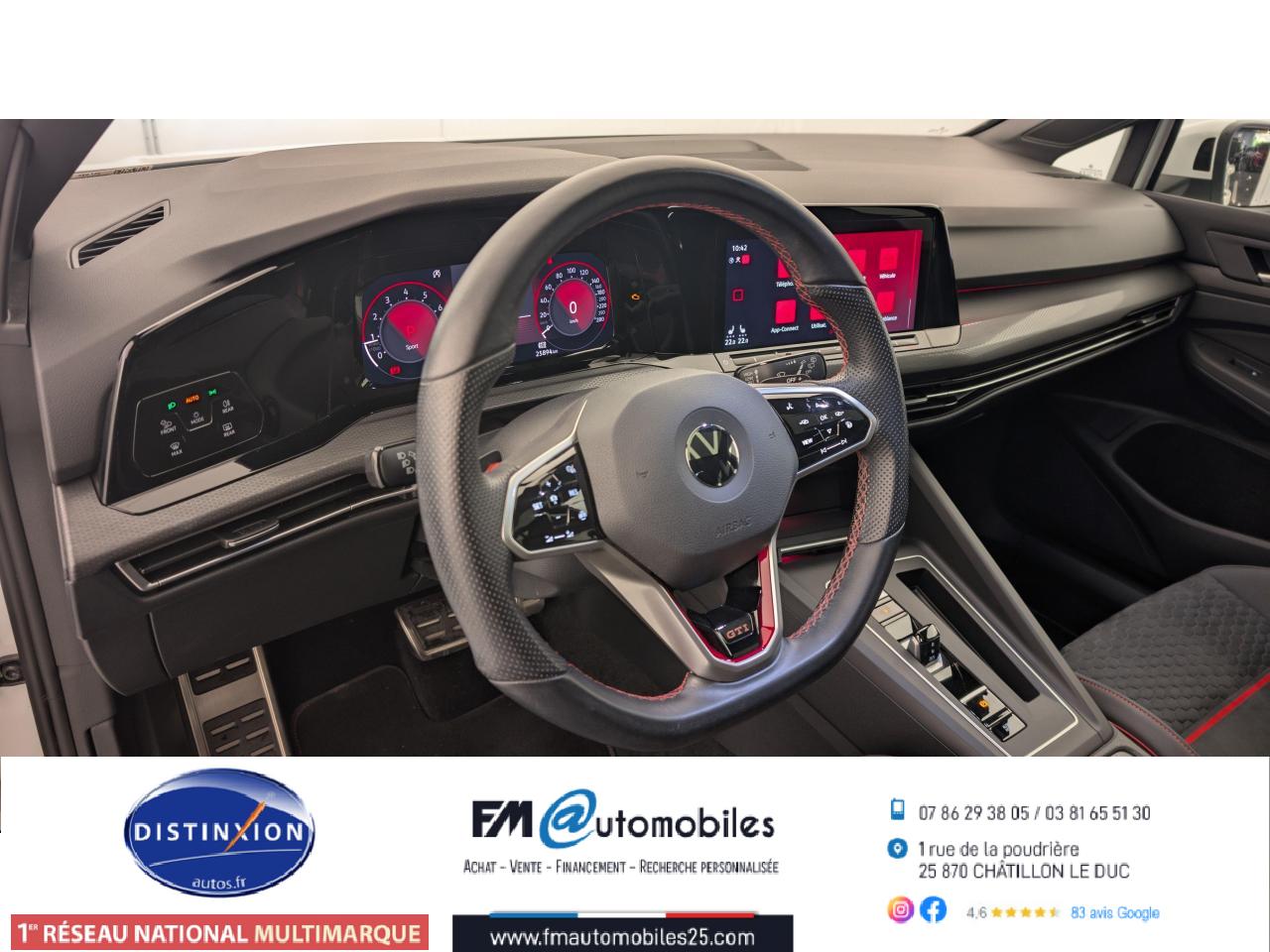 ‘Keyless Access Advanced’ sans alarme : Système de verrouillage/déverrouillage et de démarrage sans clé2 interfaces USB-C à l'avant et 2 prises de chargement USB-C derrière l’accoudoir pour les passagers arrière2 spots de lecture à l'avant et à l'arrière7 haut-parleursAccoudoir central arrière rabattable et deux porte-gobeletsAccoudoir central avant réglable en hauteur et en profondeur avec compartiment de rangementActivation automatique des feux de détresse en cas de freinage d'urgenceAirbags conducteur et passagerAirbags de «tête» passagers avant et arrièreAirbags latéraux avantAlerte de perte de pression des pneusAntipatinage électronique ASRApp-Connect sans filApplications décoratives "Black Metal Chrome" pour le tableau de bord et les revêtements de portes à l'avantAppui-tête arrière réglables en hauteurAppuie-tête à l'avant, réglables en hauteurAssistance au contrebraquageAssistance au freinage d'urgenceBadge GTi sur les ailes avant et le volet arrièreBaguette lumineuse entre les projecteursBanquette arrière rabattable 2/3 - 1/3 avec trappe à skisBlocage de différentiel d'essieu avant ‘VAQ'Câble adaptateur USB-C vers USB-ACache-bagages amovibleCeintures de sécurité automatiques avant trois points à enrouleur, réglables en hauteur, avec prétensionneursCiel de pavillon noir soulClimatiseur "Air Care Climatronic" 3 zones et filtre anti-allergène et éléments de commandes à l'arrièreCompartiment de rangement et prise 12 V à l' AVCorrecteur électronique de trajectoire ESPDigital Cockpit Pro : combiné d’instruments digital avec écran digital haute résolution couleur de 10.25”Direction progressiveDisques de frein 17” à l'avant et à l'arrièreE-call : Appel d’urgence manuel ou automatiqueEclairage à LED de la plaque d'immatriculation arrièreEclairage d'ambiance - 30 couleurs et éclairage de plancher à l'avantEclairage d'ambiance extérieur : poignées de portes éclairées et éclairage périmétrique avec projection du logoEclairage de plancher à LED à l'avant avec possibilité de sélectionner la couleur d'éclairageEcran tactile 10’’Etriers de frein rouge à l'avant et à l'arrièreFatigue Detection : Système de détection de fatigue du conducteurFeu arrière de brouillard d’un côté, feux de recul des deux côtésFixation pour siège enfant ISOFIX (arrière, x2)Frein de stationnement électromécanique avec fonction d’immobilisation en pente ‘Auto hold’ et assistant de démarrage en côteFront assist avec freinage d’urgence et détection de piétonsIndicateur de température extérieure avec avertisseur de gelInterface Bluetooth pour téléphone portable (mains-libres)Interface téléphonique avec fonction de charge inductiveJantes en alliage 7,5J x 17'' 'Richmond' avec écrous antivol et pneumatiques sport 225/45 R17Kit de dépannage : compresseur 12 volts et produit d'étanchéité de pneuLave-essuie-glace arrière à balayage intermittentLimiteur de vitesseLiseré rouge dans la calandre et les pharesMesures supplèmentaires de protection des piètonsMiroirs de courtoisie éclairés intégrés aux pare-soleilPack Travel Assist: combinaison du Lane Assist, du Side Assist, du Régulateur de distance et de l'Emergency Assist qui interagissentPack visibilitéPalettes au volantPare-chocs avant et arrière spécifiques GTI, prise d'air en structure nid d'abeilles à l'avantPark Assist : Système d'assistance au stationnement en créneau et en batailleParkPilot : Système d’aide au stationnement avant/arrière avec signaux sonores et visualisation de la distance des obstacles sur l’écranPédalier et repose-pied en acier inoxydable brosséPeinture unie Blanc PurPoignées de portes couleur carrosseriePréparation We Connect et We Connect PlusPrise 12V dans le coffreProjecteurs antibrouillard dans le bouclier avant et feux de braquageProjecteurs IQ.Light - Matrix LEDProtection antidémarrageRear Assist : Caméra de recul avec visualisationRéception radio numérique DAB+Régulateur électronique de couple MSRRépartiteur électronique de freinage EBVRétroviseur intérieur électrochromeRétroviseurs extérieurs couleur carrosserieRétroviseurs extérieurs rabattables et réglables électriquement, avec fonction mémoire et dégivrage séparéRevêtement de porte et latéral en feuille de mousse et tissuSélection du profil de conduiteSellerie tissu ‘Scale Paper’Service d’appel d’urgence (inclus 10 ans et disponible indépendamment de l’inscription dans le système d’infotainment)Siège du conducteur avec réglage en hauteurSiège passager réglable manuellement en hauteurSièges sport à l'avant spécifiques GTI avec appuis-tête intégrés et appuis lombaires à l'avantSign Assist: Reconnaissance des panneaux de signalisation et affichage sur le ‘Digital Cockpit’ et l’écran du système de radionavigationSortie d'échappement chromée à gauche et à droiteSystème d'antiblocage des roues ABSSystème de Freinage anti-multicollisionSystème Navigation & Infotainment ‘Discover Media’ avec «Services de streaming et radio via Internet»Système Start/ Stop avec récupération d'énergie de freinageTapis de sol avant et arrièreTechnologie Car2XTémoin et alerte sonore de non-bouclage des ceintures de sécurité avant et arrièreTrains roulants sportVerrouillage centralisé avec télécommande à fréquence radio par clé rétractableVitres arrière et lunette arrière surteintées à 65%Vitres avant et arrière électriquesVolant réglable en hauteur et en profondeurVolant sport multifonction en cuir spécifique GTI avec commandes tactiles, retour haptique