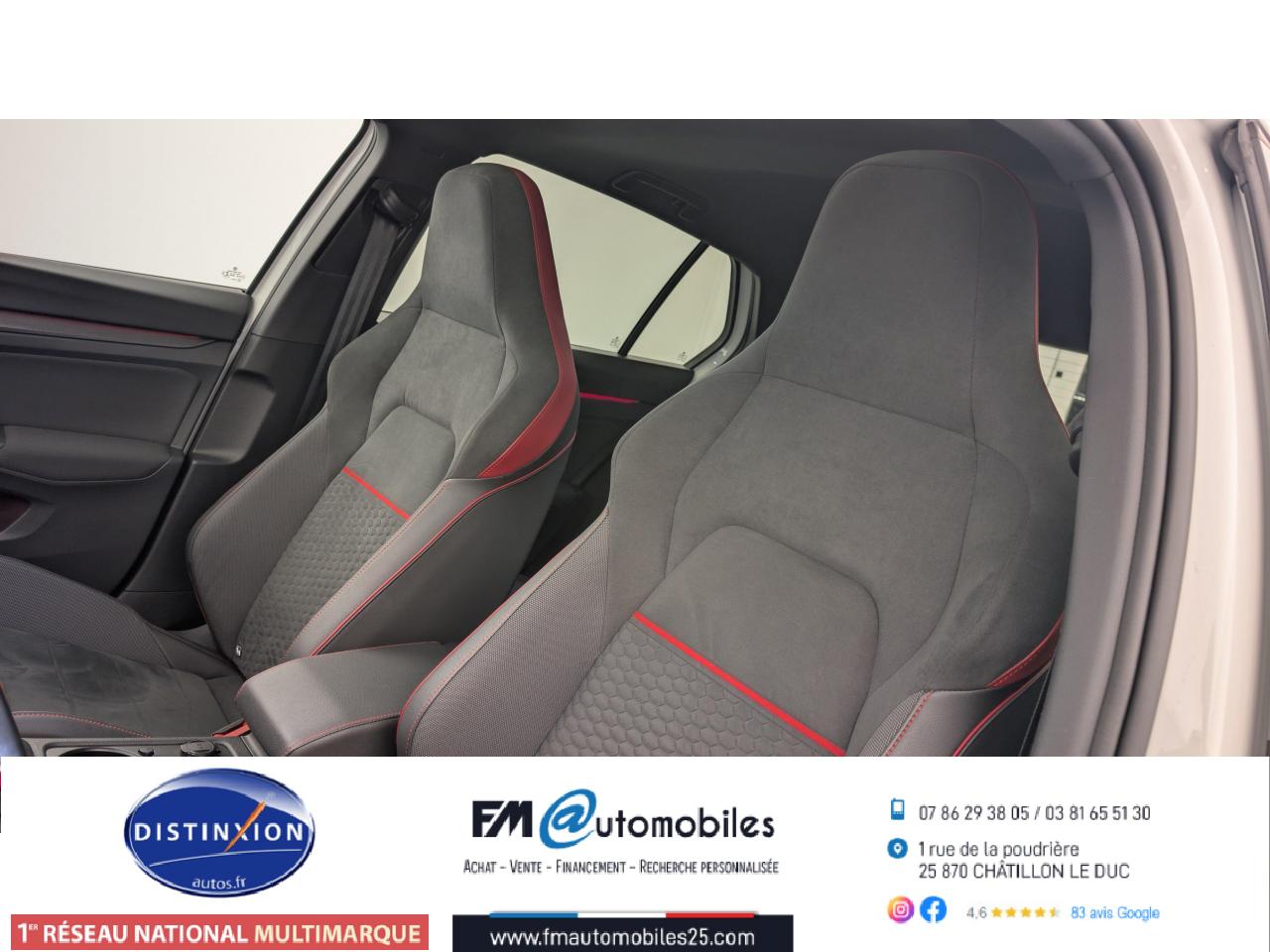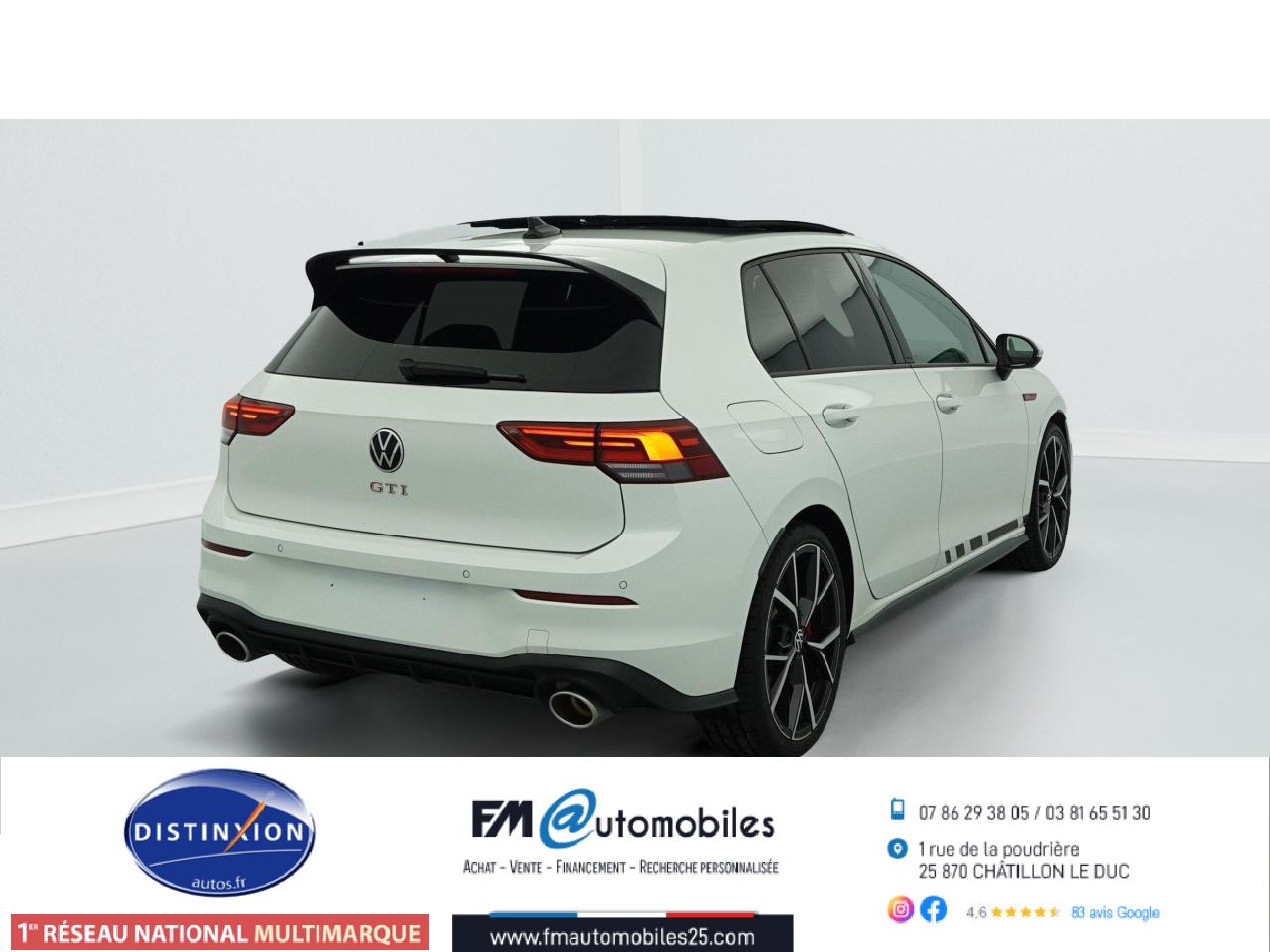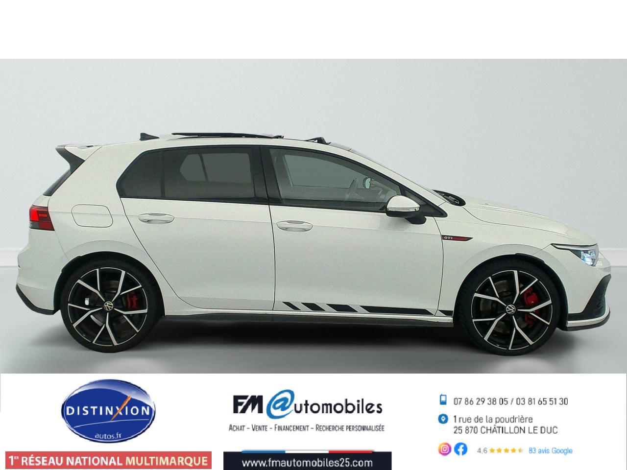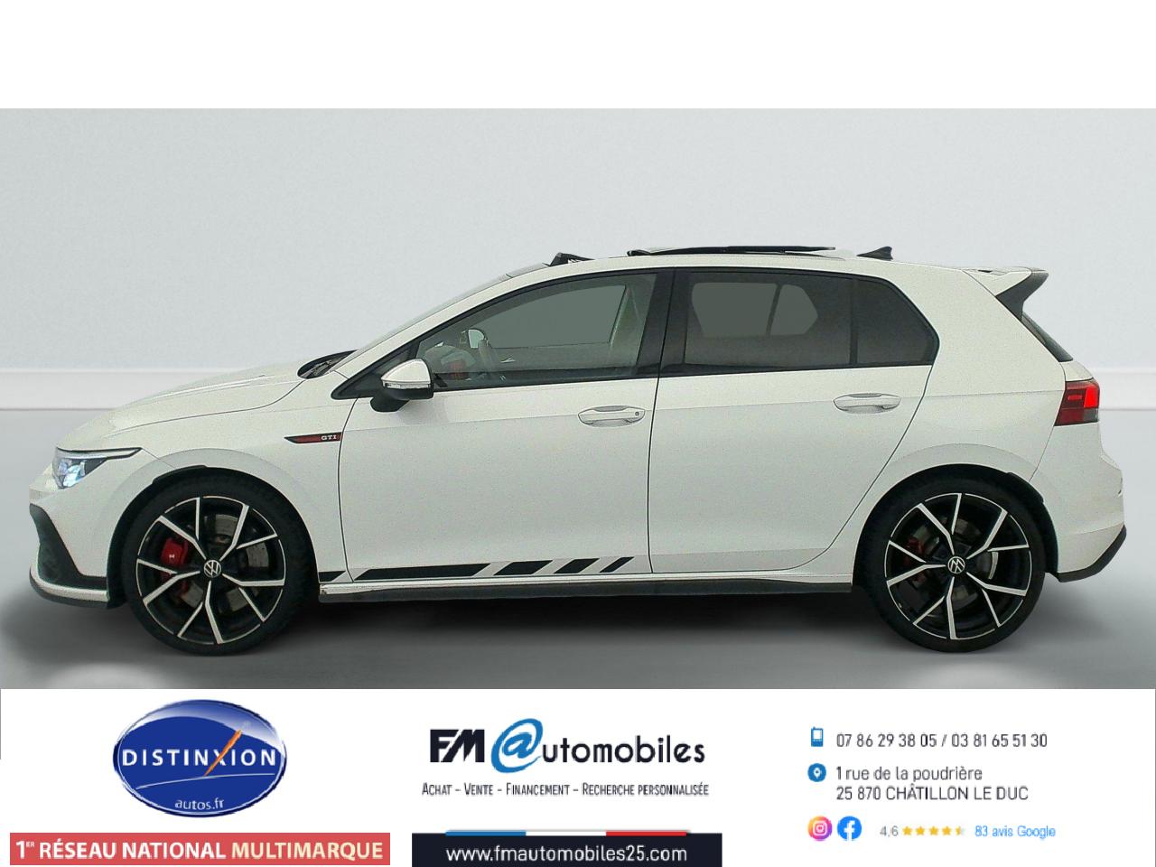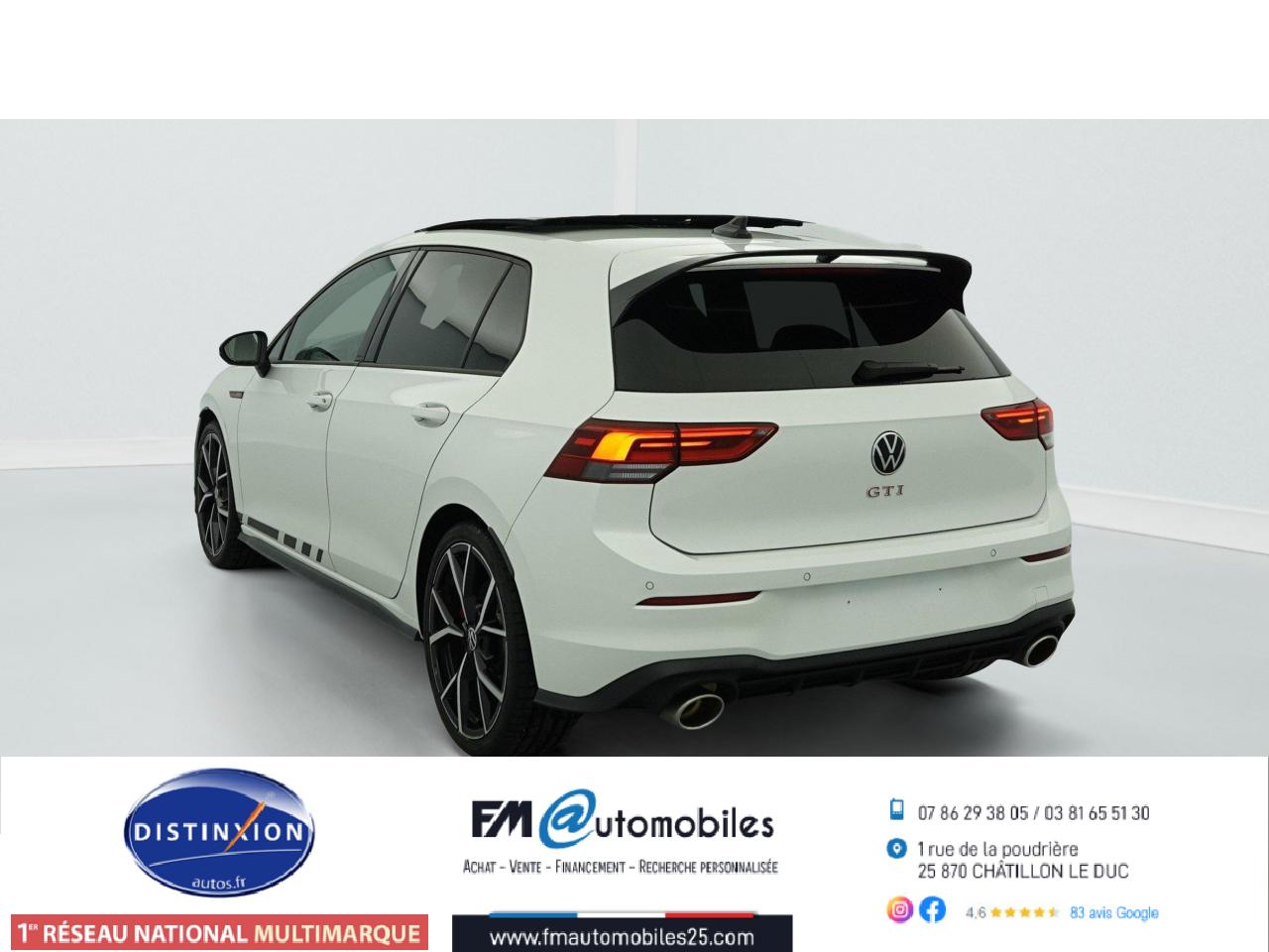 ‘Keyless Access Advanced’ sans alarme : Système de verrouillage/déverrouillage et de démarrage sans clé2 interfaces USB-C à l'avant et 2 prises de chargement USB-C derrière l’accoudoir pour les passagers arrière2 spots de lecture à l'avant et à l'arrière7 haut-parleursAccoudoir central arrière rabattable et deux porte-gobeletsAccoudoir central avant réglable en hauteur et en profondeur avec compartiment de rangementActivation automatique des feux de détresse en cas de freinage d'urgenceAirbags conducteur et passagerAirbags de «tête» passagers avant et arrièreAirbags latéraux avantAlerte de perte de pression des pneusAntipatinage électronique ASRApp-Connect sans filApplications décoratives "Black Metal Chrome" pour le tableau de bord et les revêtements de portes à l'avantAppui-tête arrière réglables en hauteurAppuie-tête à l'avant, réglables en hauteurAssistance au contrebraquageAssistance au freinage d'urgenceBadge GTi sur les ailes avant et le volet arrièreBaguette lumineuse entre les projecteursBanquette arrière rabattable 2/3 - 1/3 avec trappe à skisBlocage de différentiel d'essieu avant ‘VAQ'Câble adaptateur USB-C vers USB-ACache-bagages amovibleCeintures de sécurité automatiques avant trois points à enrouleur, réglables en hauteur, avec prétensionneursCiel de pavillon noir soulClimatiseur "Air Care Climatronic" 3 zones et filtre anti-allergène et éléments de commandes à l'arrièreCompartiment de rangement et prise 12 V à l' AVCorrecteur électronique de trajectoire ESPDigital Cockpit Pro : combiné d’instruments digital avec écran digital haute résolution couleur de 10.25”Direction progressiveDisques de frein 17” à l'avant et à l'arrièreE-call : Appel d’urgence manuel ou automatiqueEclairage à LED de la plaque d'immatriculation arrièreEclairage d'ambiance - 30 couleurs et éclairage de plancher à l'avantEclairage d'ambiance extérieur : poignées de portes éclairées et éclairage périmétrique avec projection du logoEclairage de plancher à LED à l'avant avec possibilité de sélectionner la couleur d'éclairageEcran tactile 10’’Etriers de frein rouge à l'avant et à l'arrièreFatigue Detection : Système de détection de fatigue du conducteurFeu arrière de brouillard d’un côté, feux de recul des deux côtésFixation pour siège enfant ISOFIX (arrière, x2)Frein de stationnement électromécanique avec fonction d’immobilisation en pente ‘Auto hold’ et assistant de démarrage en côteFront assist avec freinage d’urgence et détection de piétonsIndicateur de température extérieure avec avertisseur de gelInterface Bluetooth pour téléphone portable (mains-libres)Interface téléphonique avec fonction de charge inductiveJantes en alliage 7,5J x 17'' 'Richmond' avec écrous antivol et pneumatiques sport 225/45 R17Kit de dépannage : compresseur 12 volts et produit d'étanchéité de pneuLave-essuie-glace arrière à balayage intermittentLimiteur de vitesseLiseré rouge dans la calandre et les pharesMesures supplèmentaires de protection des piètonsMiroirs de courtoisie éclairés intégrés aux pare-soleilPack Travel Assist: combinaison du Lane Assist, du Side Assist, du Régulateur de distance et de l'Emergency Assist qui interagissentPack visibilitéPalettes au volantPare-chocs avant et arrière spécifiques GTI, prise d'air en structure nid d'abeilles à l'avantPark Assist : Système d'assistance au stationnement en créneau et en batailleParkPilot : Système d’aide au stationnement avant/arrière avec signaux sonores et visualisation de la distance des obstacles sur l’écranPédalier et repose-pied en acier inoxydable brosséPeinture unie Blanc PurPoignées de portes couleur carrosseriePréparation We Connect et We Connect PlusPrise 12V dans le coffreProjecteurs antibrouillard dans le bouclier avant et feux de braquageProjecteurs IQ.Light - Matrix LEDProtection antidémarrageRear Assist : Caméra de recul avec visualisationRéception radio numérique DAB+Régulateur électronique de couple MSRRépartiteur électronique de freinage EBVRétroviseur intérieur électrochromeRétroviseurs extérieurs couleur carrosserieRétroviseurs extérieurs rabattables et réglables électriquement, avec fonction mémoire et dégivrage séparéRevêtement de porte et latéral en feuille de mousse et tissuSélection du profil de conduiteSellerie tissu ‘Scale Paper’Service d’appel d’urgence (inclus 10 ans et disponible indépendamment de l’inscription dans le système d’infotainment)Siège du conducteur avec réglage en hauteurSiège passager réglable manuellement en hauteurSièges sport à l'avant spécifiques GTI avec appuis-tête intégrés et appuis lombaires à l'avantSign Assist: Reconnaissance des panneaux de signalisation et affichage sur le ‘Digital Cockpit’ et l’écran du système de radionavigationSortie d'échappement chromée à gauche et à droiteSystème d'antiblocage des roues ABSSystème de Freinage anti-multicollisionSystème Navigation & Infotainment ‘Discover Media’ avec «Services de streaming et radio via Internet»Système Start/ Stop avec récupération d'énergie de freinageTapis de sol avant et arrièreTechnologie Car2XTémoin et alerte sonore de non-bouclage des ceintures de sécurité avant et arrièreTrains roulants sportVerrouillage centralisé avec télécommande à fréquence radio par clé rétractableVitres arrière et lunette arrière surteintées à 65%Vitres avant et arrière électriquesVolant réglable en hauteur et en profondeurVolant sport multifonction en cuir spécifique GTI avec commandes tactiles, retour haptique